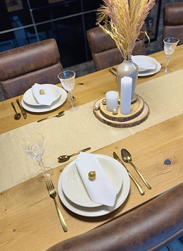 Božićna ukrasna tkanina ima dašak elegancije i luksuza zahvaljujući svojim svjetlucavim vlaknima lureksa. Ističe se kao staza ili podmetač za božićno i zimsko ukrašavanje. Rubovi materijala su zapečaćeni, ali se hrpaju prilikom rezanja.