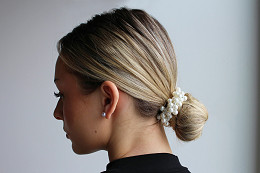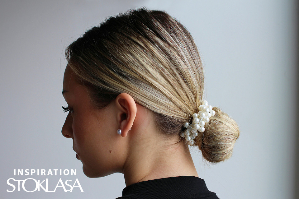 Rastezljiva gumica za kosu s umjetnim biserima dodat će vašoj frizuri eleganciju. Rastezljiva je i dvostrana - ima drugačiji dizajn sa stražnje i prednje strane.